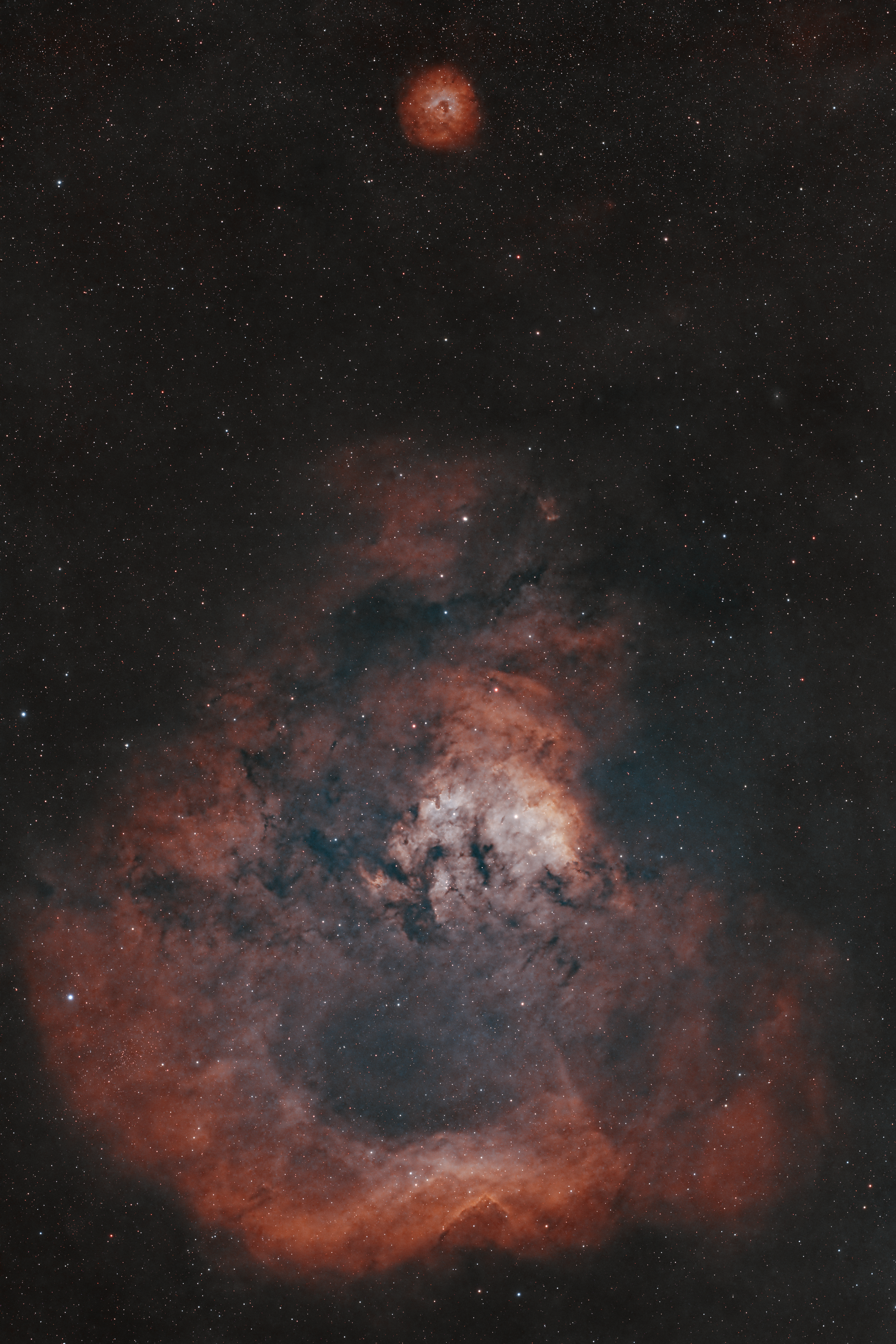 WO RedCat 250/51mm, L-Ultimate dual NB filter, ASI2600 MC camera, ASIAIR Plus controller, AM5N mount. 120 5' exposures stacked and processed in PixInsight with RC-Astro and SetiAstro tools. Final exp and crop in Affinity Photo