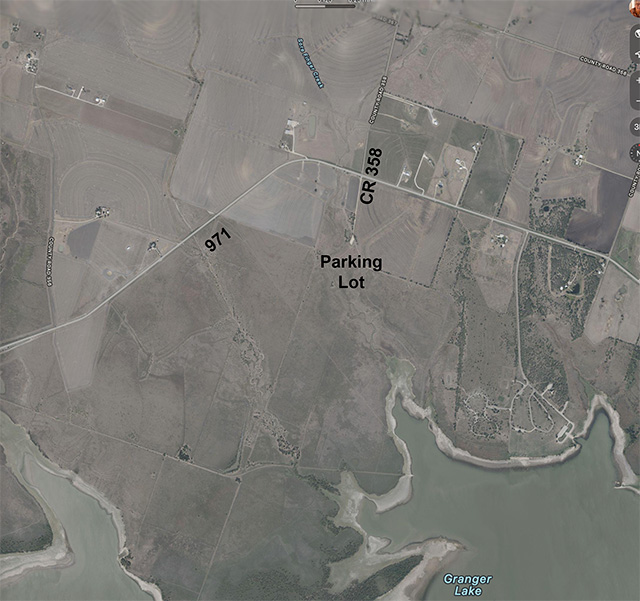 On the north side of Granger Lake north of Taylor. Parking lot off dirt CR358, south of 971, east of 95. GPS: 30.72968, -97.3521